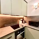 - ❓Is there a kitchen available at the apartment for guest use?Yes, the apartment is furnished with a fully-fitted kitchen and offers a microwave oven, an electric kettle, and glassware as well.